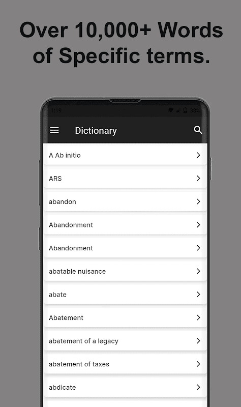 abstract of record,acceptance,appearance,article,assign,beneficiary,bond,calendar,capital gains,caution,chancellor,common law,conclude,delegate,dilatory,etc.