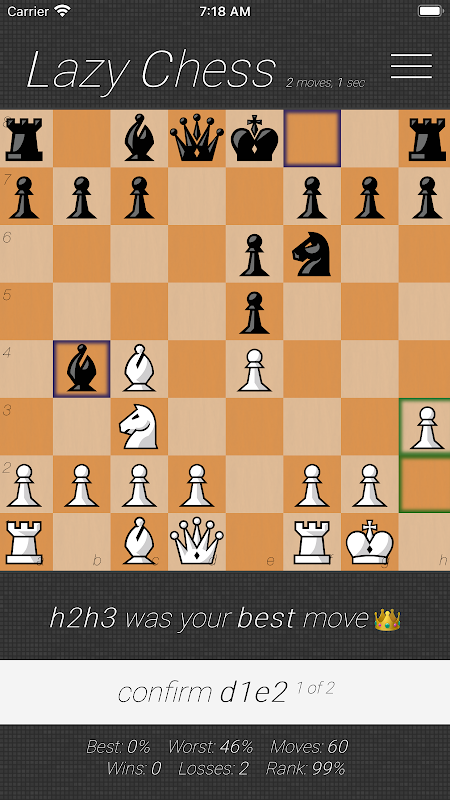 Lazy Chess to darmowa, non-profitowa gra stworzona zarówno dla graczy okazjonalnych, jak i entuzjastów, w której gracze, w najgorszym przypadku, udostępniają im drugi najlepszy ruch. Średnio gracz ma do dyspozycji ponad 30 legalnych ruchów szachowych w turze, co tworzy miliony możliwości w trakcie gry. Lazy Chess kompresuje to, pozwalając Ci wybrać tylko dwa w danej turze wybrane przez Stockfish, najsolidniejszy silnik szachowy na świecie. Haczyk? Nie będziesz wiedział, który ruch jest najlepszy!
