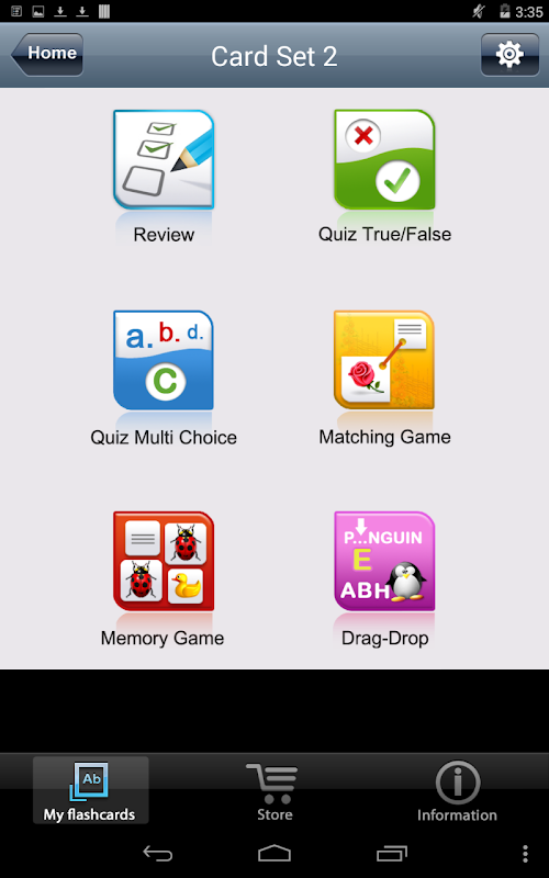 MEMORY MODE: randomly generates customizable tests with memory game options based on your flashcard set. You need flip one of each of the matching flashcard pairs on the screen at the same time.