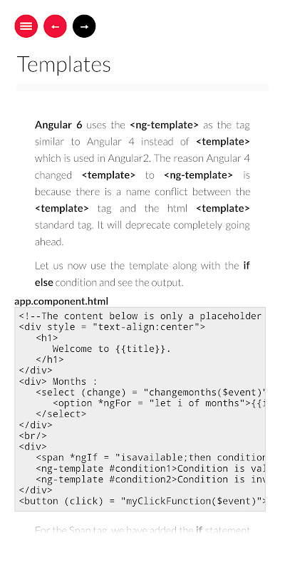 This FREE app will help you to understand Angular6 Tutorial properly and teach you about how to Start Coding using Angular6. Here we are covering almost all Classes, Functions,