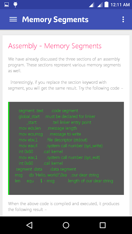 This app provides an excellent tutorial on Assembly Language basics and also with the core Assembly Language concepts.