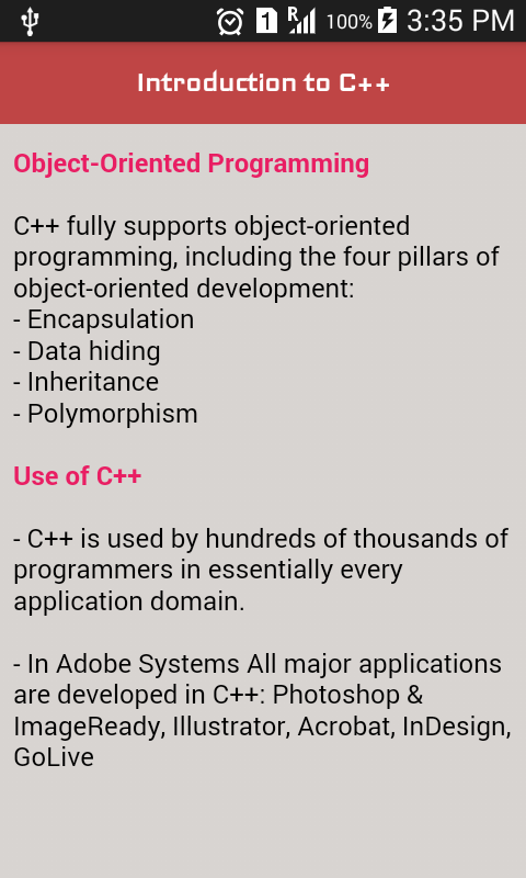Learn C++ Programming app enables you to carry C++ programming Tutorials in your android phone. It contains about 100+ Programs with output.