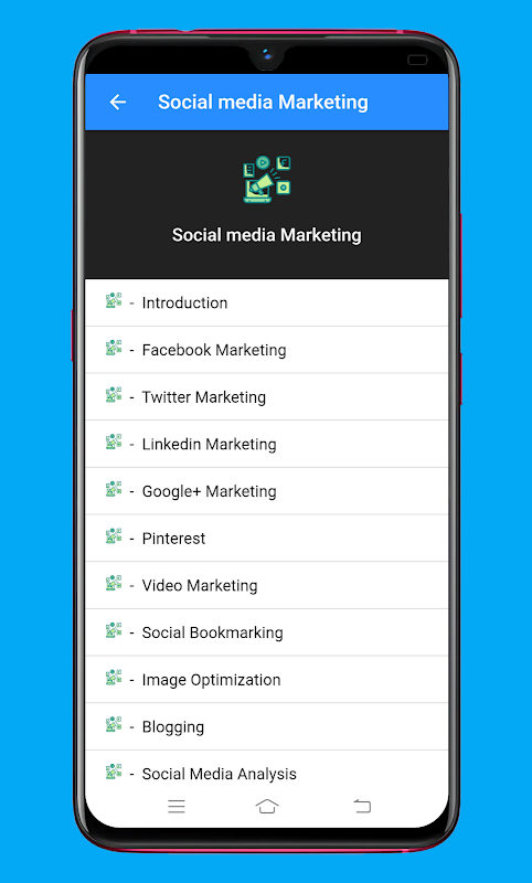 Naucz się marketingu cyfrowego, SEO i blogowania. Ta aplikacja zawiera samouczki dotyczące marketingu cyfrowego zaprojektowane specjalnie dla początkujących, którzy chcą rozpocząć karierę w marketingu cyfrowym, ale nie wiedzą, od czego powinni zacząć.