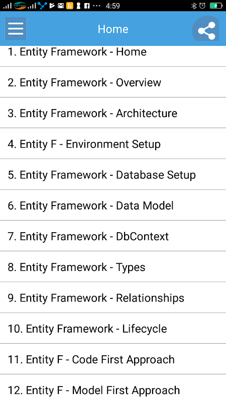 The Learn Entity Framework is designed for those who want to learn how to start the development of Entity Framework in their application.