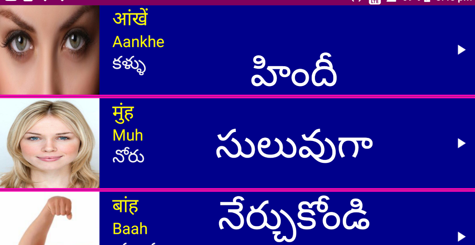łatwo nauczyć się ważnego słownictwa hindi z telugu.