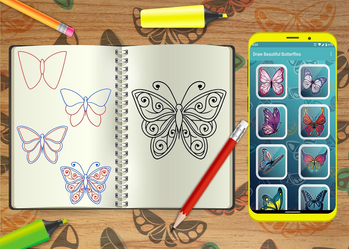 “Learn How to Draw Beautiful Butterfly” is the best drawing tutorial app in the store. you really need to download flying butterfly app if you want to be an artist.