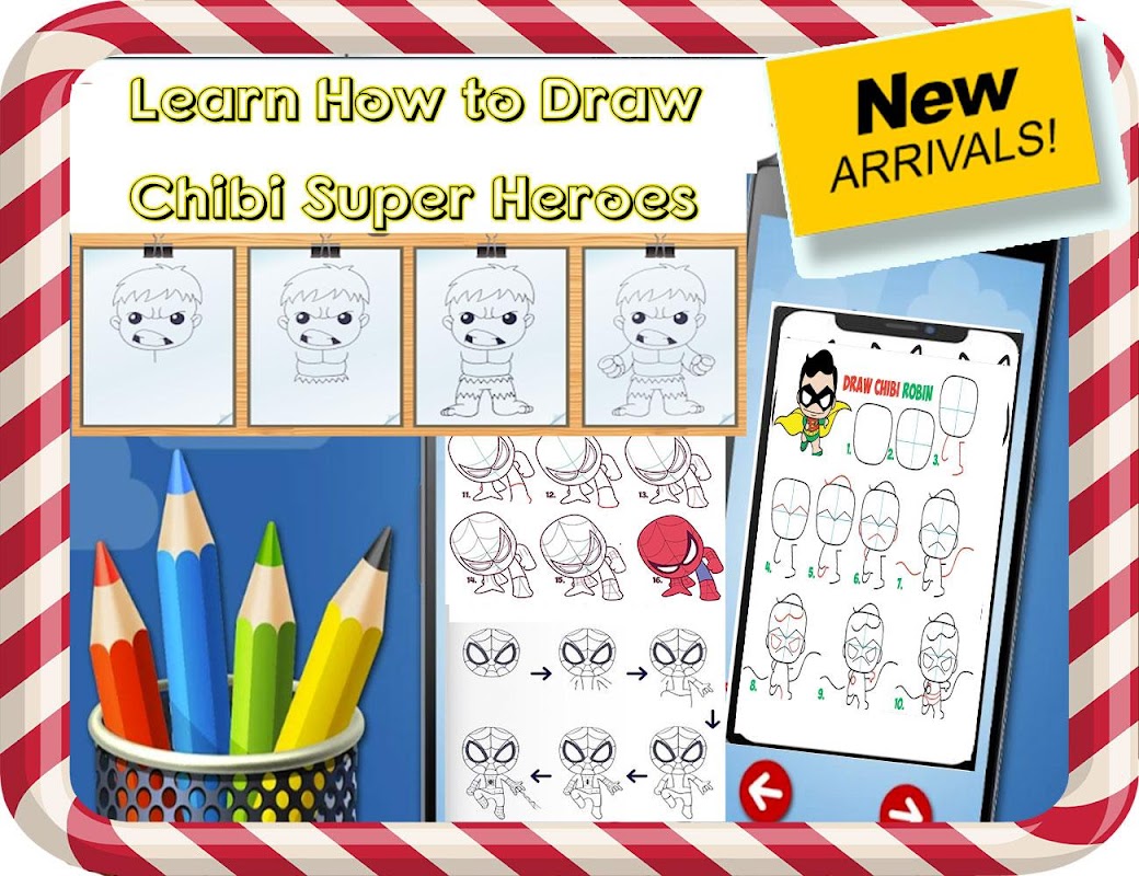 If you want to draw amazing super hero from your favorite movie and cartoon but you did not know how to draw, no worries. This drawing tutorial for people anything anywhere application will provides some of adorable chibi super hero drawing step by step and don't need any special skills, it’s self-teaching.