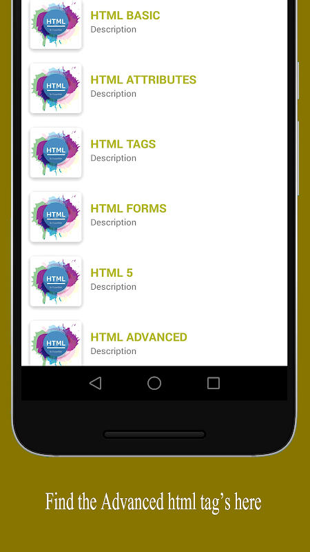 You can easily understand the html code tag with great interface and html code guide for beginners. After that you will easily understand the development of html. This app also covers the html5 advanced tag with brief description.