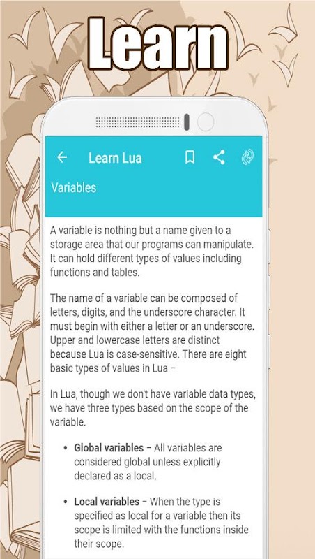This app will help you to understand basic Lua & advance Lua. This app is Lua Tutorial for Beginners. The chapters in Learn Lua lessons are fast, easy, and effective; the app is set up to be completed in less than three hours. No prior programming experience is needed.