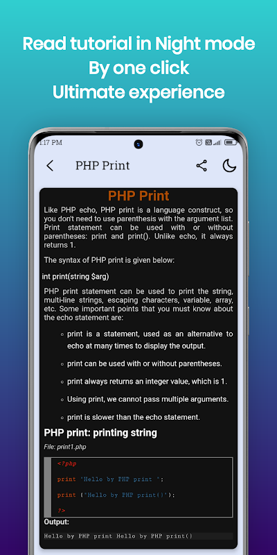 Learn PHP ma naprawdę prosty interfejs użytkownika. jest to najlepsza aplikacja do nauki języka programowania PHP za darmo. Pobierz aplikację teraz, aby zostać programistą PHP.