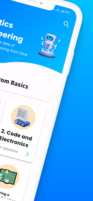Aplikacja Learn Robotics Engineering zawiera całą zawartość dotyczącą robota oraz jego typów sterowania i pracy, jego charakterystyki i właściwości. Aplikacja Learn Robotics Engineering zawiera również wiedzę na temat typów serwomotorów i kodu, elektroniki, programowania IMU w języku Python. Mają także wiedzę o podłączaniu czujników robotyki.