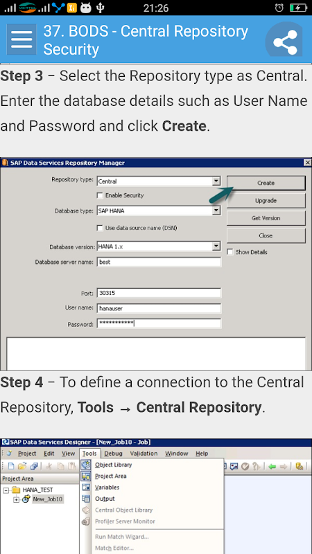 The Learn SAP BODS App will help all those readers who want to create their own local repository, configure a job server, start basic job development and execute the job to extract data from source systems and load the data to target systems after performing transformations, look-ups and validations.