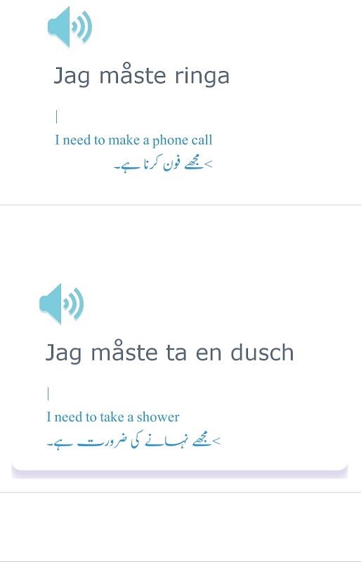 Aplikacja Szwedzki Urdu została opracowana z należytą starannością, aby pomóc Ci płynniej mówić po szwedzku.