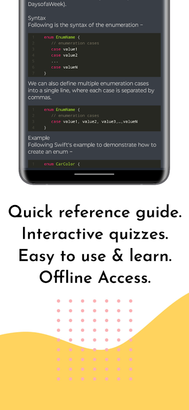Czy chcesz bez wysiłku opanować programowanie w języku Swift? Nie szukaj dalej! Z radością przedstawiamy „Learn Swift”, najlepszą aplikację na Androida zaprojektowaną tak, aby nauka języka Swift była dziecinnie prosta. Niezależnie od tego, czy jesteś początkującym, czy doświadczonym programistą, w tej aplikacji każdy znajdzie coś dla siebie.