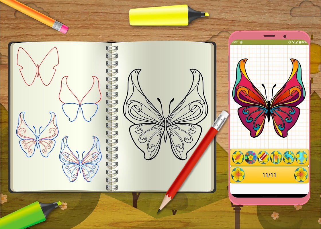 How to Draw and Color Beautiful Butterfly app is a personal art teacher, it will teach you how to draw a butterfly in easy steps.