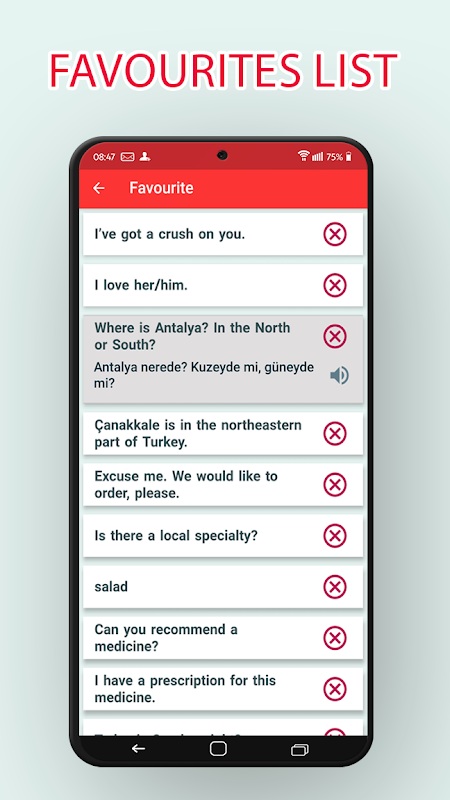 This app contains more than 1500 commonly-used Turkish phrases and vocabularies for travelers and beginners which are divided into 38 categories.