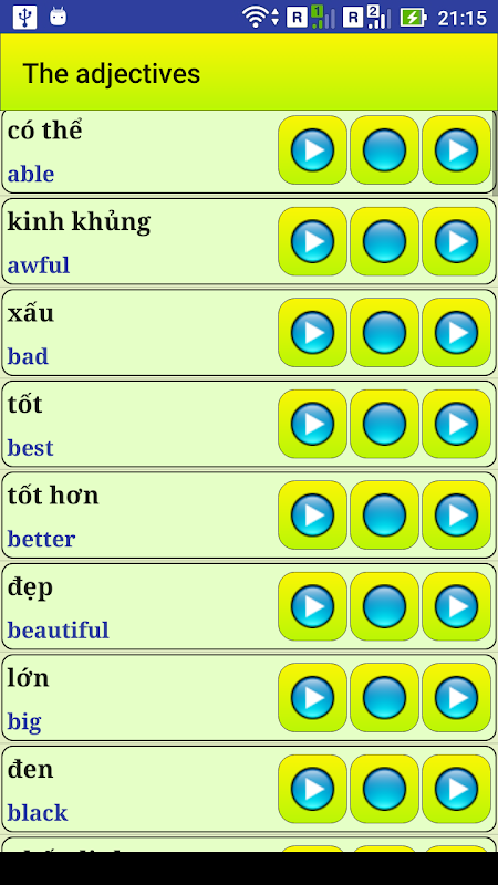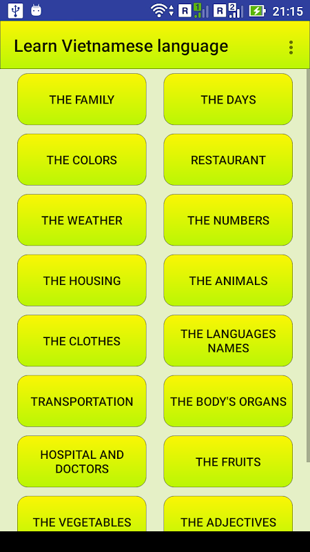 Naucz się najczęściej używanych słów w języku wietnamskim. Możesz znaleźć więcej tematów, takich jak: rodzina, dni, kolory, restauracja i jedzenie, pogoda, liczby, mieszkanie, zwierzęta, ubrania, nazwy języków, transport, narządy ciała, szpital i lekarze, owoce, warzywa, przymiotniki i czasowniki.