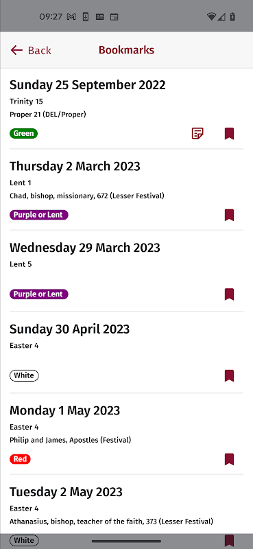 Aplikacja Lekcjonarz Common Worship zawiera oficjalny kalendarz, czytania biblijne (NRSV) i kolekty z Kościoła anglikańskiego.
