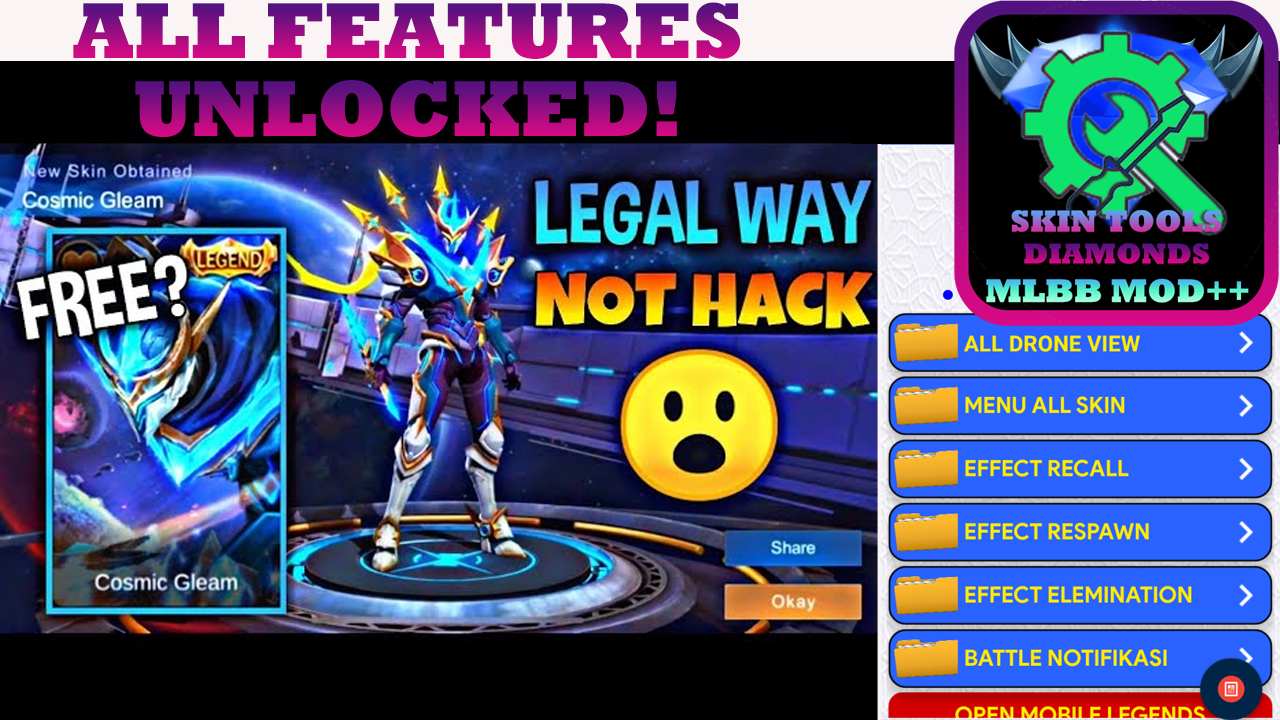 ML Skin Tools is a Mod Skin & Unlock All Skin for ML easy apply the most complete Skin Config easily only through an application. ML Skin Tools with many MOD SKIN that can be downloaded and installed directly. Skin will continue to update without having to update the application through the play store. ML Skin Tools is an outstanding app made for mobile and dedicated to the sole purpose of providing you with the most fun and enjoyment possible so as to encourage the spirit to elevate past the limit. ML Skin Tools also stands out from its contemporaries with the most refined and polished experience for its users but nonetheless uphold a high standard because ML Skin Tools strives for the betterment of you and everyone else to make sure that that the time spent with ML Skin Injector will be an enjoyable and fun one with a colorful app. In this application, there are many MOD SKIN and also the original files that can be downloaded and installed directly without any hassle. MOD SKIN will be added at any time without having to update the application in the playstore, there will be a notification when there is a new MOD SKIN update.