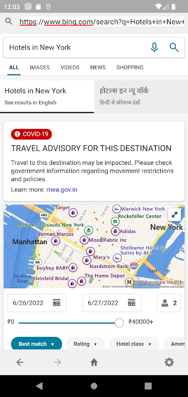 - Aplikacja ma wbudowaną wyszukiwarkę. Uwaga: Wyniki wyszukiwania są dostarczane przez Microsoft Bing.
