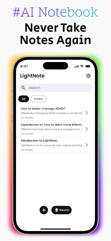 Organizacja folderów: Twórz niestandardowe foldery według scenariusza lub tematu. Kategoryzuj notatki ze spotkań, materiały szkoleniowe i dokumenty projektowe jednym dotknięciem – znajdź to, czego potrzebujesz natychmiast, koniec z chaosem informacyjnym.