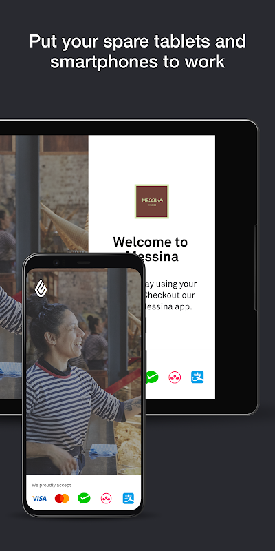 Zaprezentuj swoje opcje płatności na ekranie powitalnym i pokaż klientom status płatności w czasie rzeczywistym.