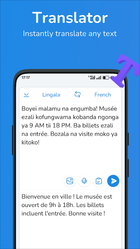 - Błyskawiczne tłumaczenie: uzyskaj natychmiastowe tłumaczenie nawet skomplikowanych akapitów z języka lingala na francuski i z francuskiego na lingala