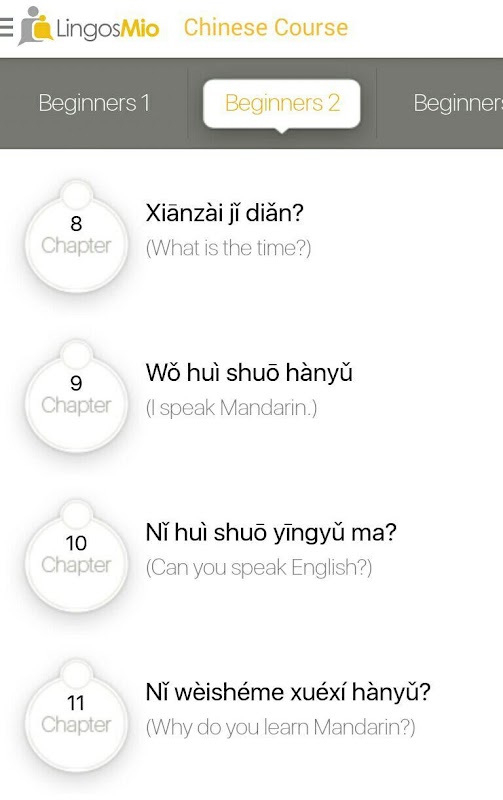 LingosMio Android app offers courses to learn English, French, Spanish and Mandarin Chinese.
