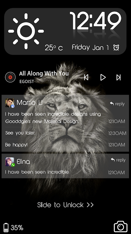 This black majestic lion theme which can make your lock screen look classical and cool, which is perfect for most of android device like sumsang/sony/huawei.