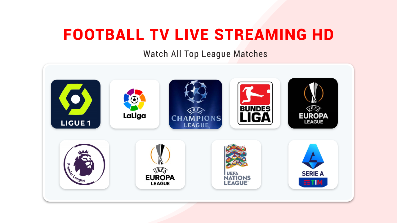 Live Football TV HD has the best offer for the football lovers as well. Don’t miss any football game. May it be the: Premier League, LaLiga, Bundesliga, Serie A, Ligue 1, UEFA Champions League , UEFA Europa League, UEFA Europa Confrence League, UEFA Nations League enjoy live football and everything you expect from a good football app.