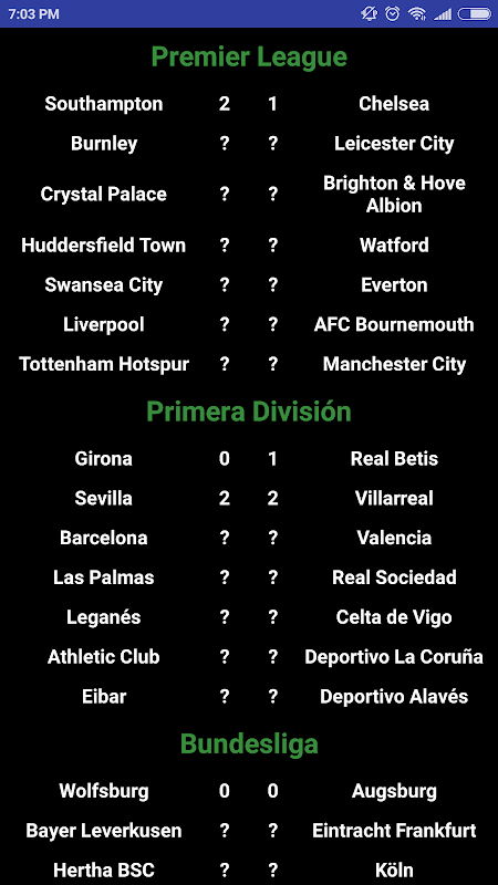 Wyniki on-line jest to sport line aplikację z widget, który daje Relacja na żywo (wyniki, terminarz, tabele) na górnym nożnej lig i rozgrywek. Jako nasz pierwszym wydaniu mamy włączone te funkcje. Z dnia na dzień będziemy zwiększenie naszych możliwości. My także