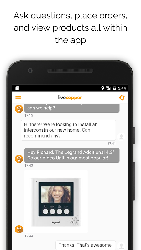 Simply chat to us with this app, preview products and engage with our staff. Ask questions, place orders, and view products all within the app.