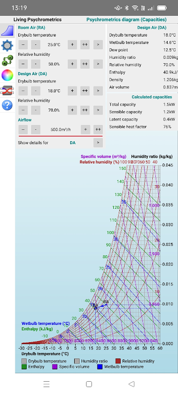 - Możesz wprowadzić dane za pomocą klawiatury lub użyć przycisków, aby zwiększyć lub zmniejszyć wartość. Przyciski umożliwiają również animację na diagramach psychrometrycznych.