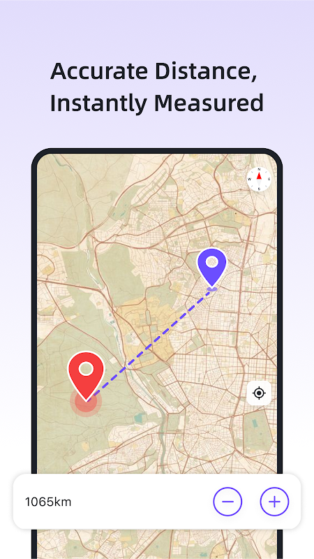 Dokładny pomiar odległości w linii prostej między dowolnymi dwoma punktami na mapie. Obsługa wyświetlania wielu jednostek ułatwia ocenę odległości i planowanie.