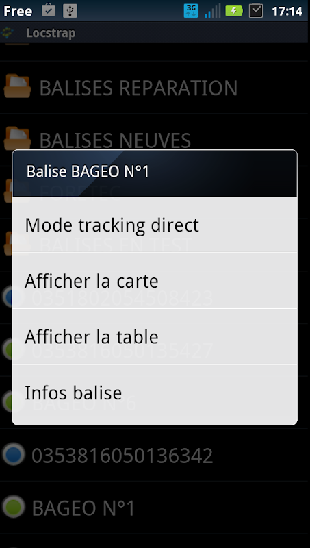 - les derniers points de la balise avec rafraîchissement automatiquement, et