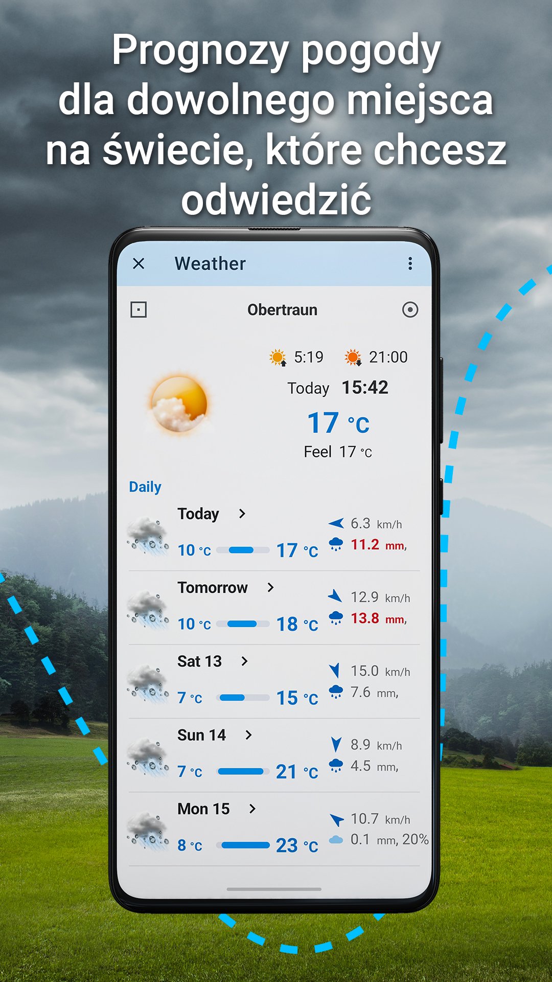 • Prognoza pogody 24/7 w dowolnym miejscu na Ziemi