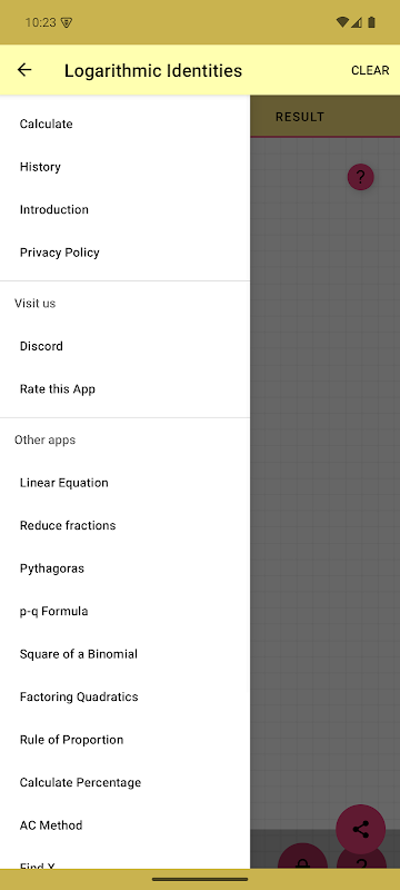 - tryby logarytmu (dodawanie, odejmowanie, mnożenie, dzielenie, zmiana podstawy)