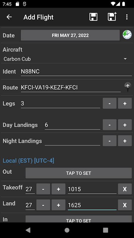 * Możliwość dostosowania kaskadowych wpisów czasu dla przylotu, startu, lądowania i przylotu, co przyspiesza i ułatwia wprowadzanie danych dotyczących lotu