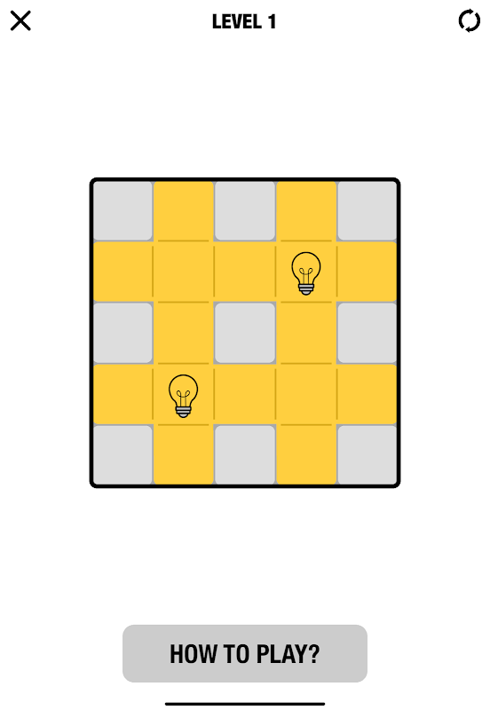 Każda łamigłówka przedstawia siatkę spowitą ciemnością. Twój cel: umieść żarówki, aby oświetlić każdy kafel siatki.