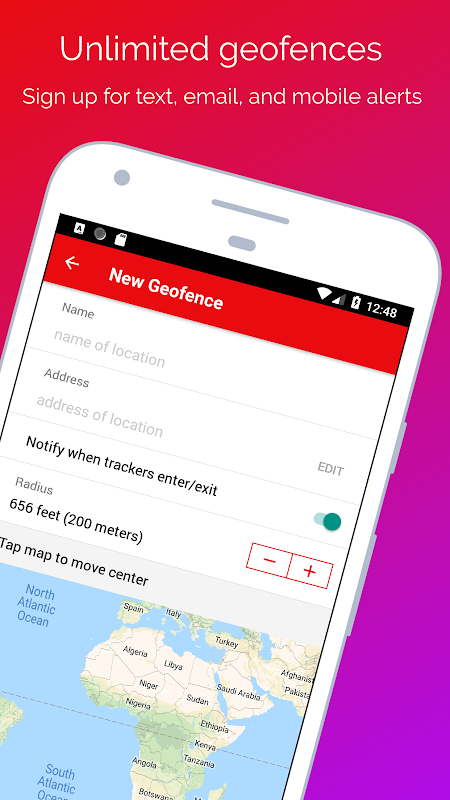 Ustaw i otrzymywać powiadomienia, gdy trackery wchodzić i wychodzić od granic geograficznych utworzyć.