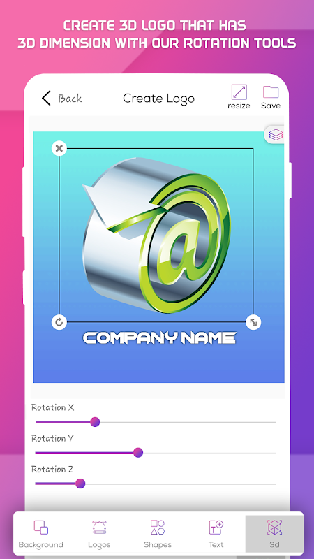 Logo Maker also provides professional photo editing and text editing tools like: Flip, Rotate, 3D Rotate, Resize, Curve, Font, brand logos, Color, logo expert Hue and lots more that you'll need to create beautiful original logos.