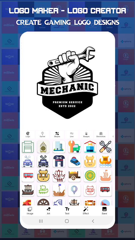 Logo Maker includes a huge collection of categorized Art(Stickers), Graphic Elements, Shapes, Mockup Backgrounds & Textures to create an original logo in no time.