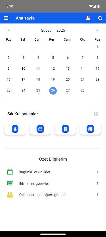 Ana sayfa üzerinden açılan takvim detayında tarih seçimi yapılabilmesi sağlanmıştır.