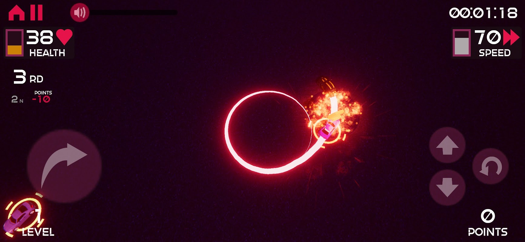 Gracz musi uderzać/zbierać samochody bonusowe. Bonusowe samochody albo leczą gracza, albo dają punkty.