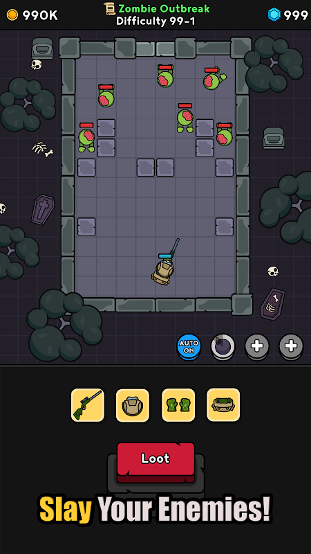 Delve into an infinite dungeon and face increasingly difficult waves of enemies. Your hero fights automatically in this thrilling auto-battler, slaying enemies to earn gold and drop valuable loot chests. Whether you are actively managing your inventory or letting the game run, the incremental progression ensures your character is always growing stronger.