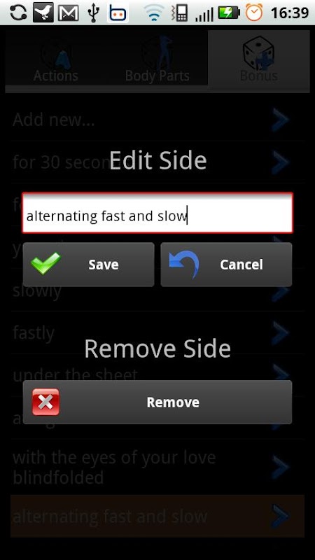 3 kości (Action, część ciała, Bonus)