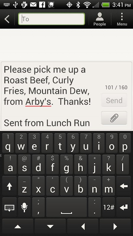 Lunch Run. Pick your favorite from a list of 16 national fast food restaurants, choose your menu items and send a text to someones phone.
