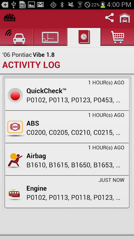 • Uzyskaj dostęp do kodów hamulcowe ABS i definicje odnoszące się do kontrolki ABS dla większości 1996 i nowsze pojazdy GM, Ford, Chrysler, Honda, Hyundai, Nissan i Toyota poprzez kody Czytać firmy ABS polecenie diagnostyczne.