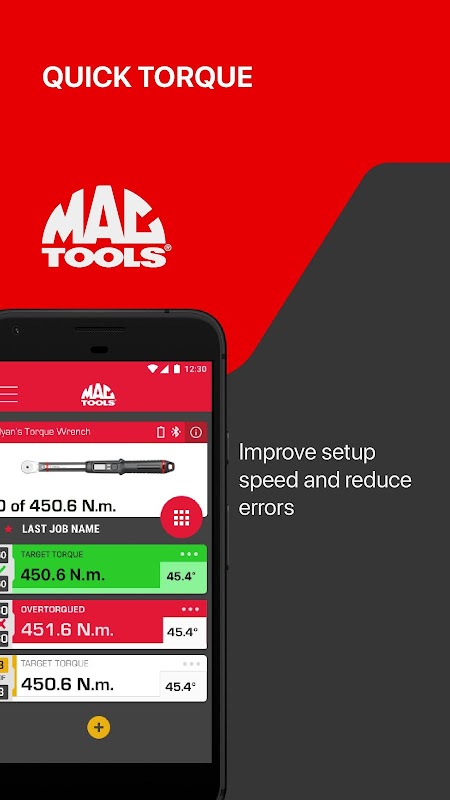 Dzięki aplikacji Mac Tools App zacznij kontrolować swój inteligentny klucz i szybko ustaw docelowy moment obrotowy, co pomoże w ograniczeniu błędów, oraz rejestruj pomiary do celów kontroli. Ustawiaj wartości, wczytuj ulubione ustawienia i generuj raporty.