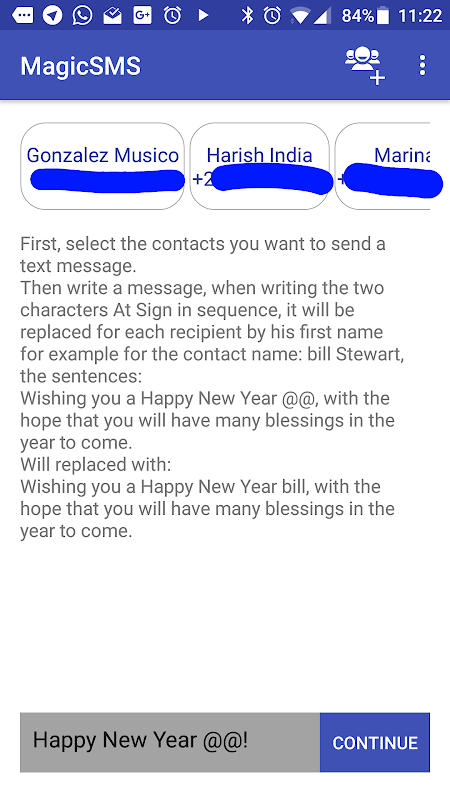 send SMS once and every recipient will receive different message with his private name!